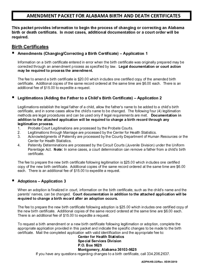 Get the free Amendment Packet for Alabama Birth and Death Certificates