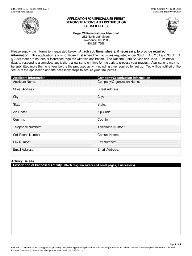 Get the free Nps Form 10-934
