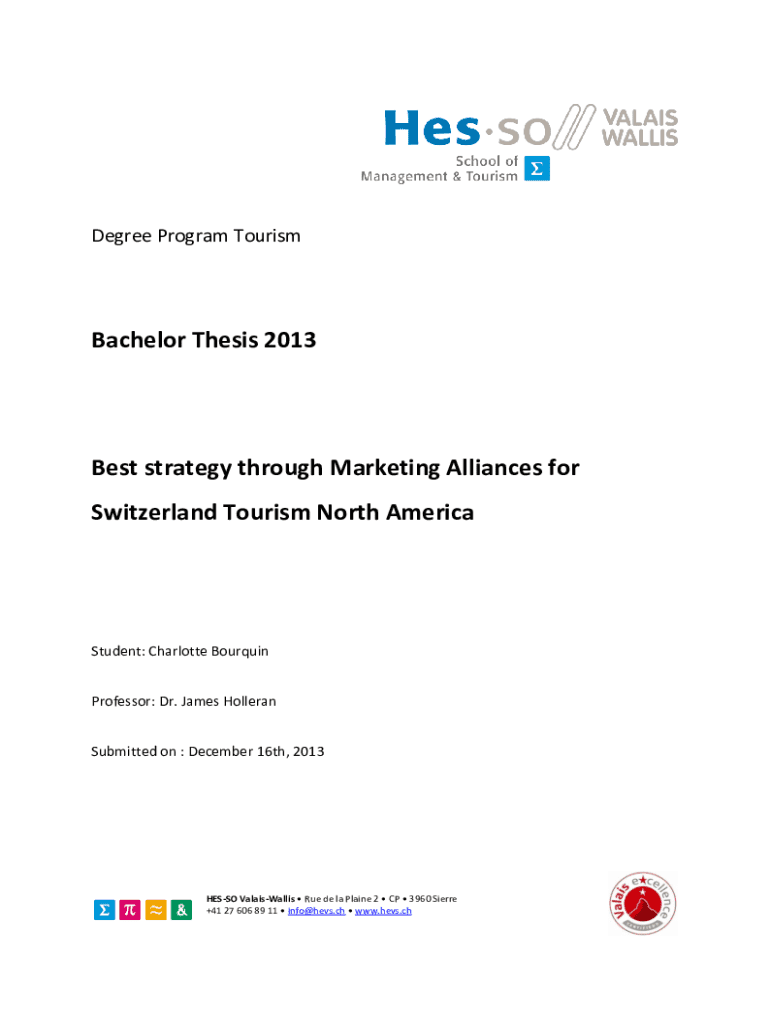 Degree Program TourismBachelor Thesis 2013Best strategy through Marketing Alliances for Switzerland Tourism North AmericaStudent: Charlotte Bourquin Professor: Dr. James Holleran Submitted on : December