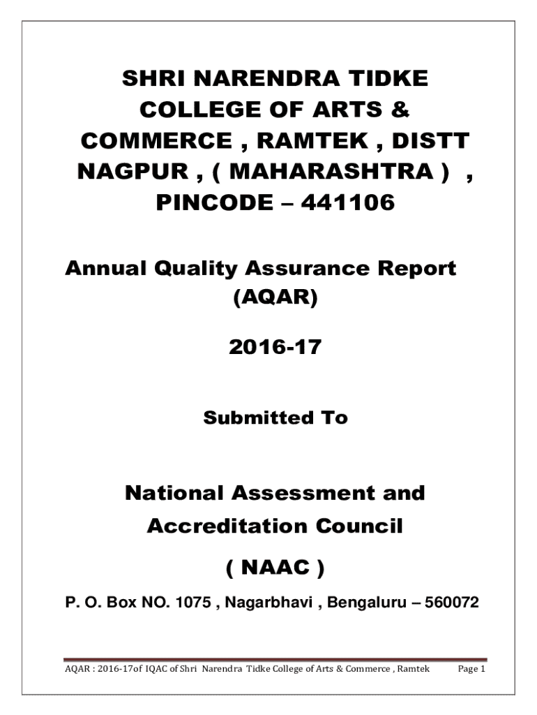 Annual Quality Assurance Report (AQAR) submitted by Shri Narendra Tidke College of Arts & Commerce, Ramtek for the year 2016-17 to the National Assessment and Accreditation Council (NAAC). This document