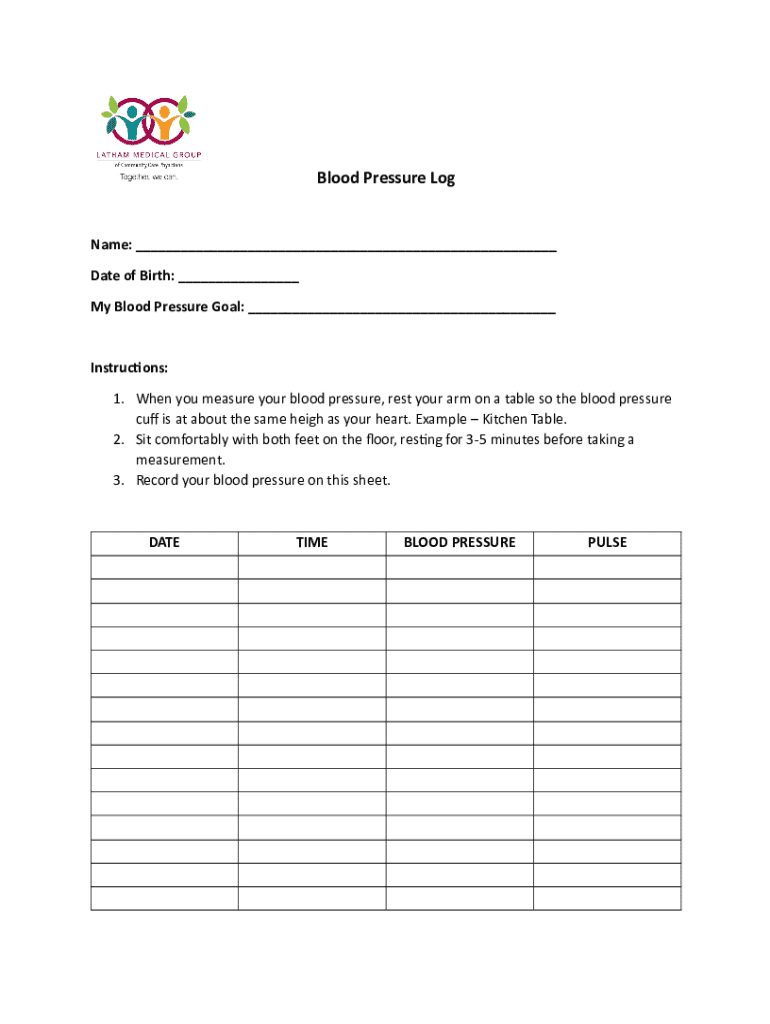 Get the free Blood Pressure Log
