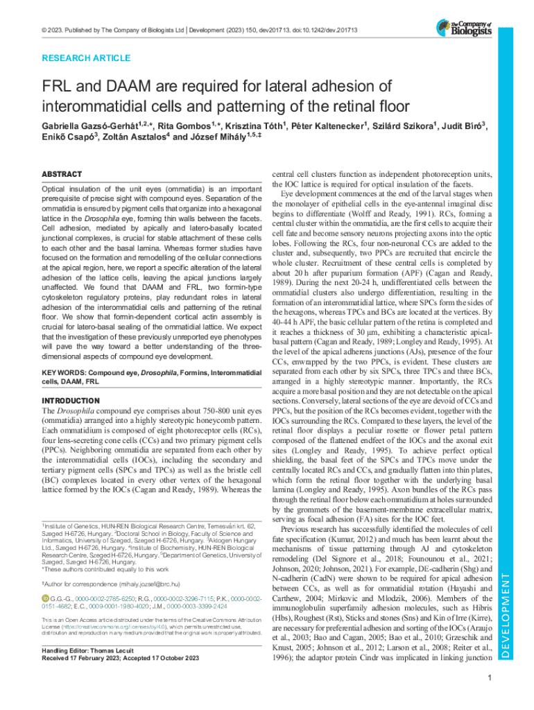 2023. Published by The Company of Biologists Ltd | Development (2023) 150, dev201713. doi:10.1242/dev.201713RESEARCH ARTICLEFRL and DAAM are required for lateral adhesion of interommatidial cells