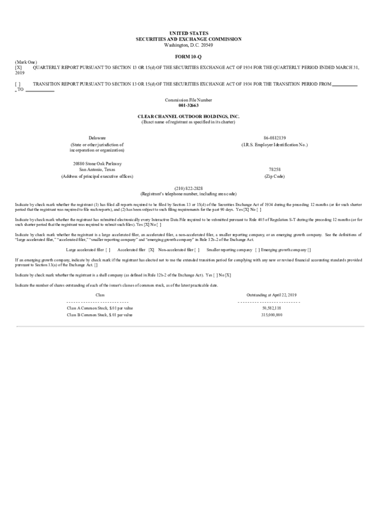 This Form 10-Q is a quarterly report that provides a detailed financial overview of Clear Channel Outdoor Holdings, Inc. including financial statements, management discussions, legal proceedings,