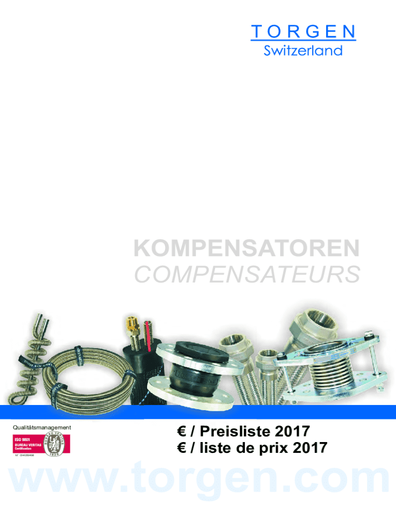 TORGENKOMPENSATOREN COMPENSATEURSQualittsmanagementN CH4350408 / Preisliste 2017 / liste de prix 2017www.torgen.comLiefer und Versandbedingungen Torgen GmbH Conditions de livraison et d\'expdition