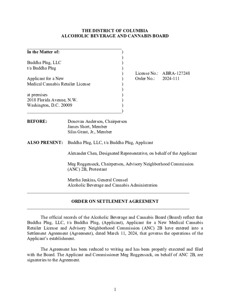 THE DISTRICT OF COLUMBIA ALCOHOLIC BEVERAGE AND CANNABIS BOARD ___ In the Matter of: ) ) Buddha Plug, LLC ) t/a Buddha Plug ) ) Applicant for a New ) Medical Cannabis Retailer License ) ) at premises