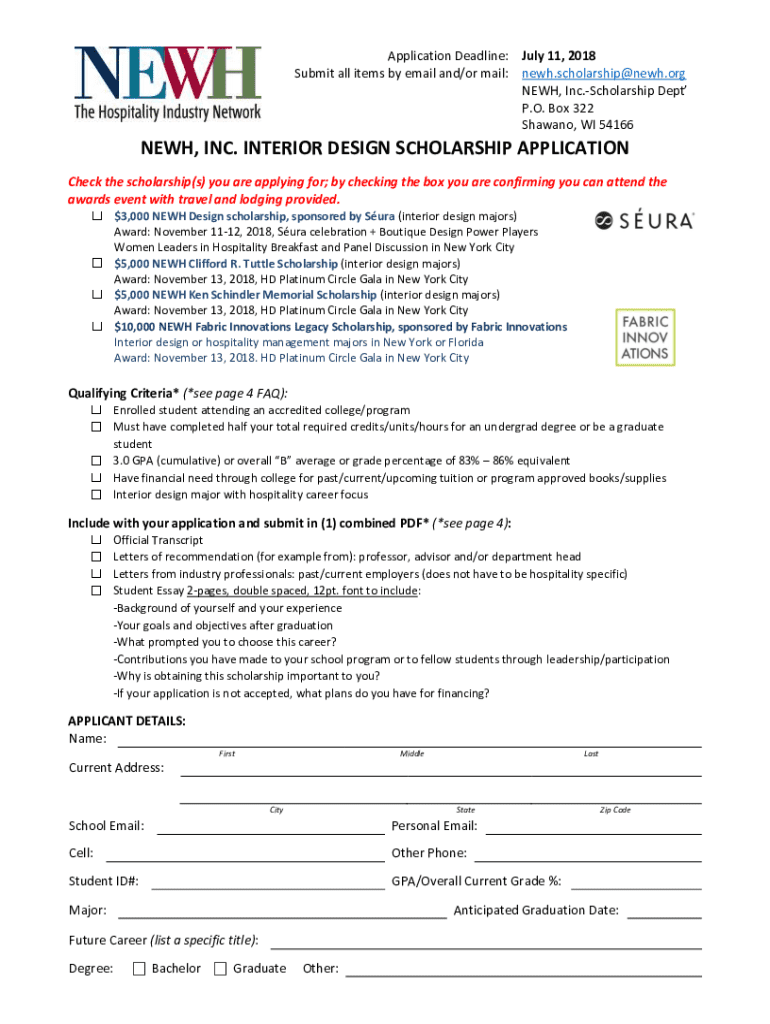 Get the free Newh Interior Design Scholarship Application
