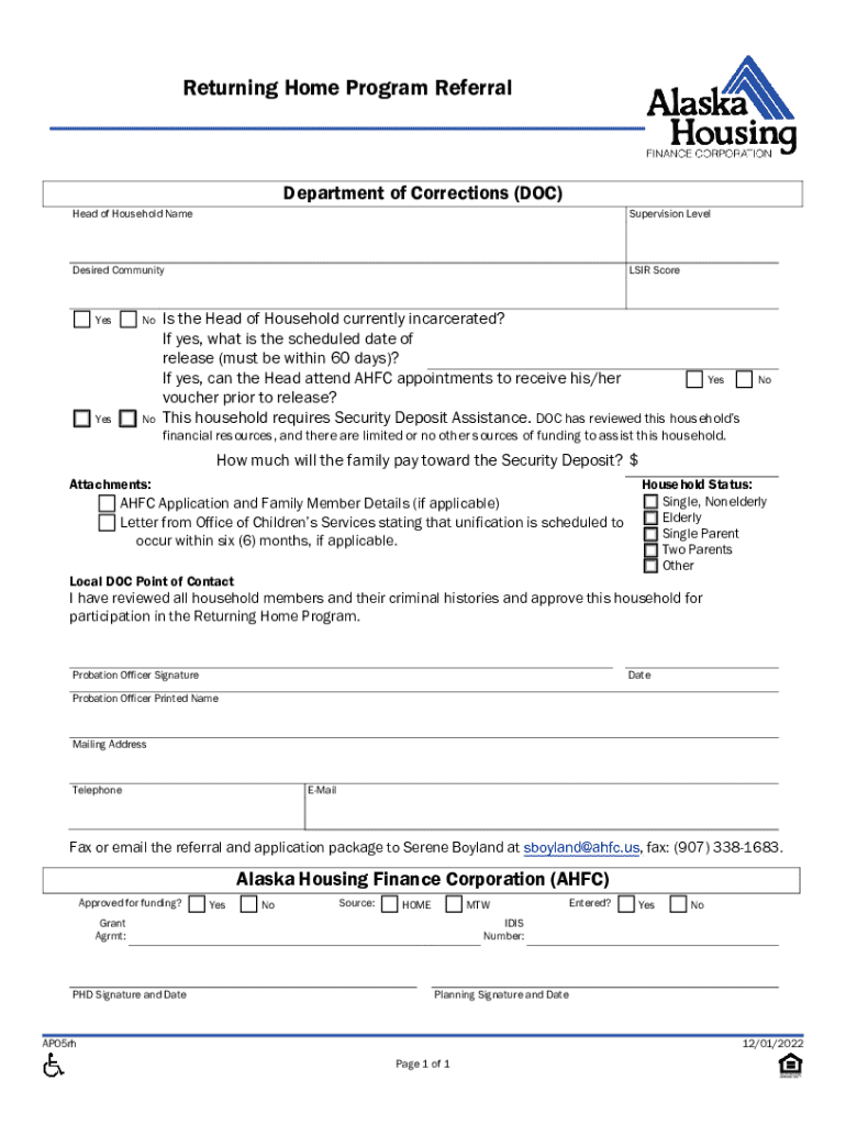 To fill out the returning home program referral, applicants need to complete a designated form that usually requires personal information, current living situation, reasons for displacement, and any additional information relevant to their need for assistance.