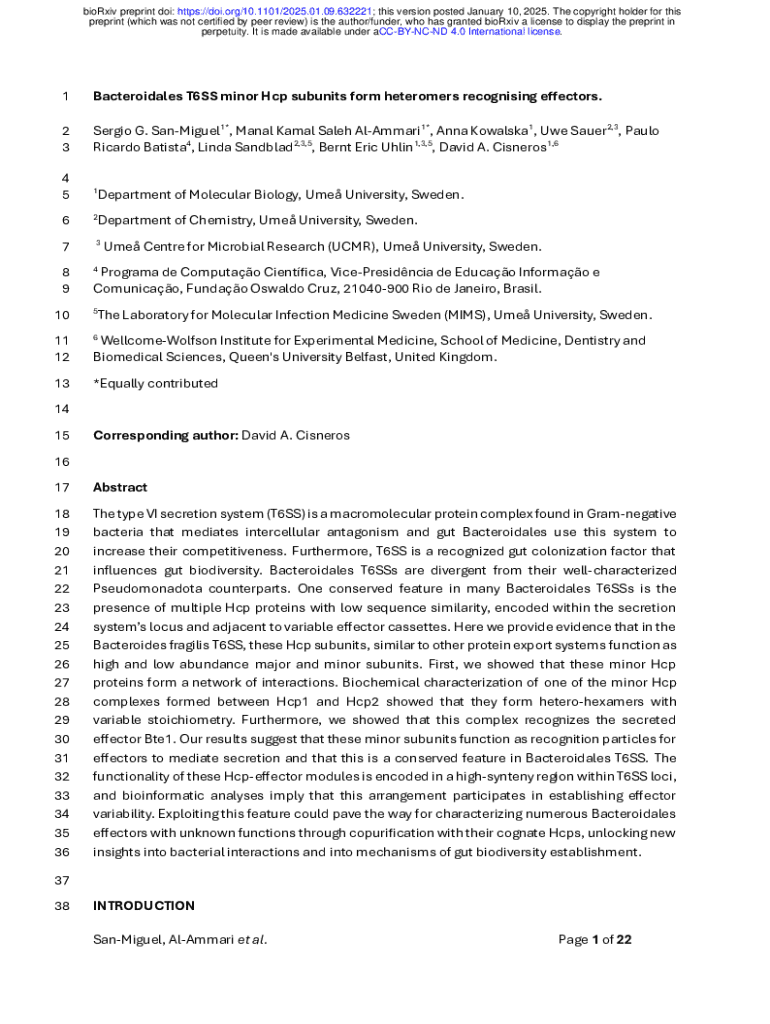 Get the free Bacteroidales T6SS minor Hcp subunits form heteromers recognising effectors