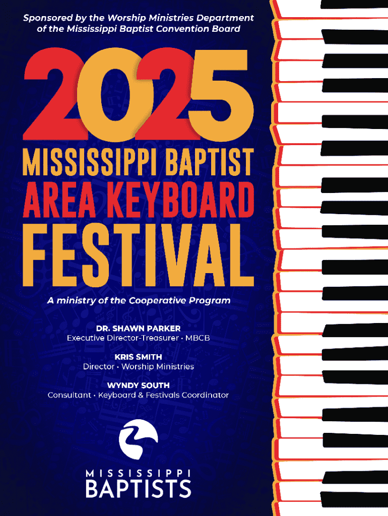 This document outlines the registration process, guidelines, and requirements for participation in the Area Keyboard Festivals hosted by the Worship Ministries Department, MBCB. It includes details