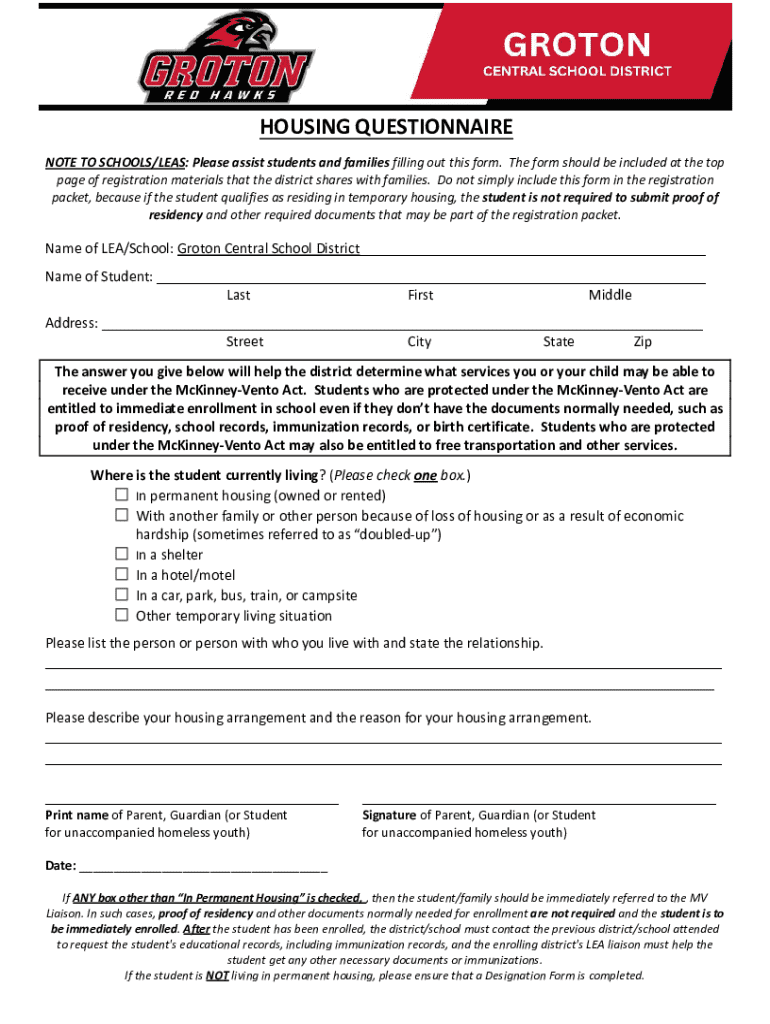 Get the free Housing Questionnaire