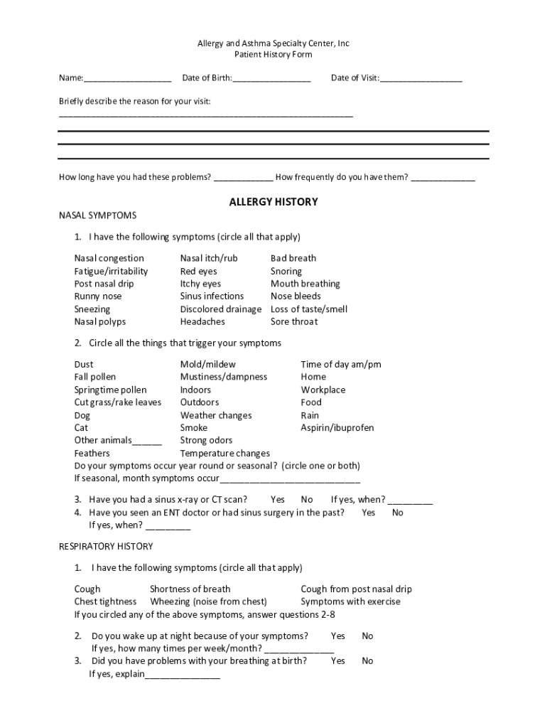 Get the free Patient History Form
