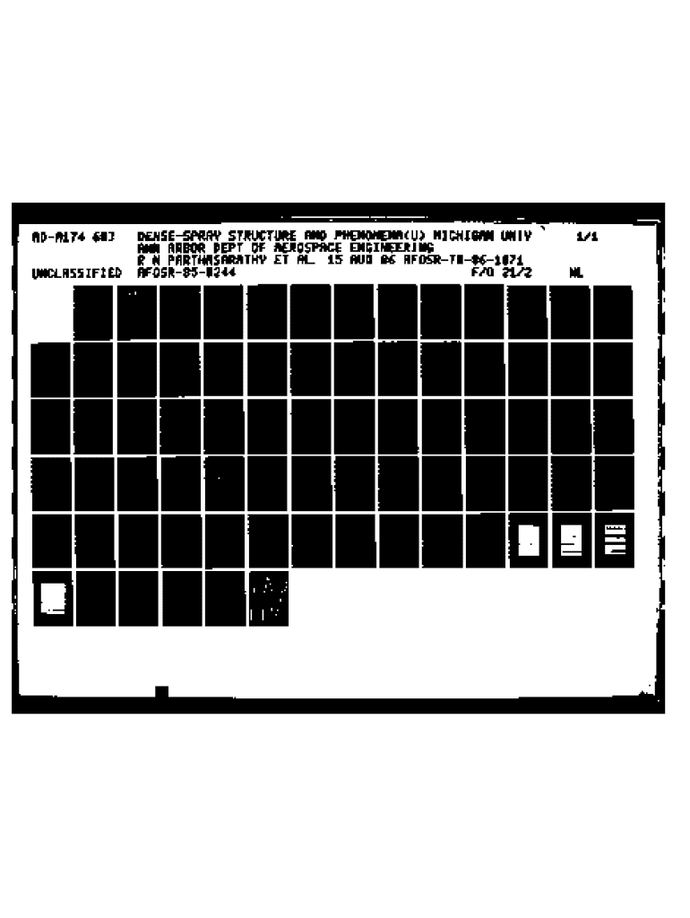 NOAI?4 663 UNCLDENSESPRAY STRUCTURE AND PHENONEMI(U) NICHIGAN UNJYI ANN RBOR DEPT OF AEROSPACE ENGINEERING PRTHASARATHY ET AL. 15 AUG 86 RFOSRTR961071 21/2NL ASSIFIEDAF244F/0SOElMMMMChE11.ii32SLLj11j2.2