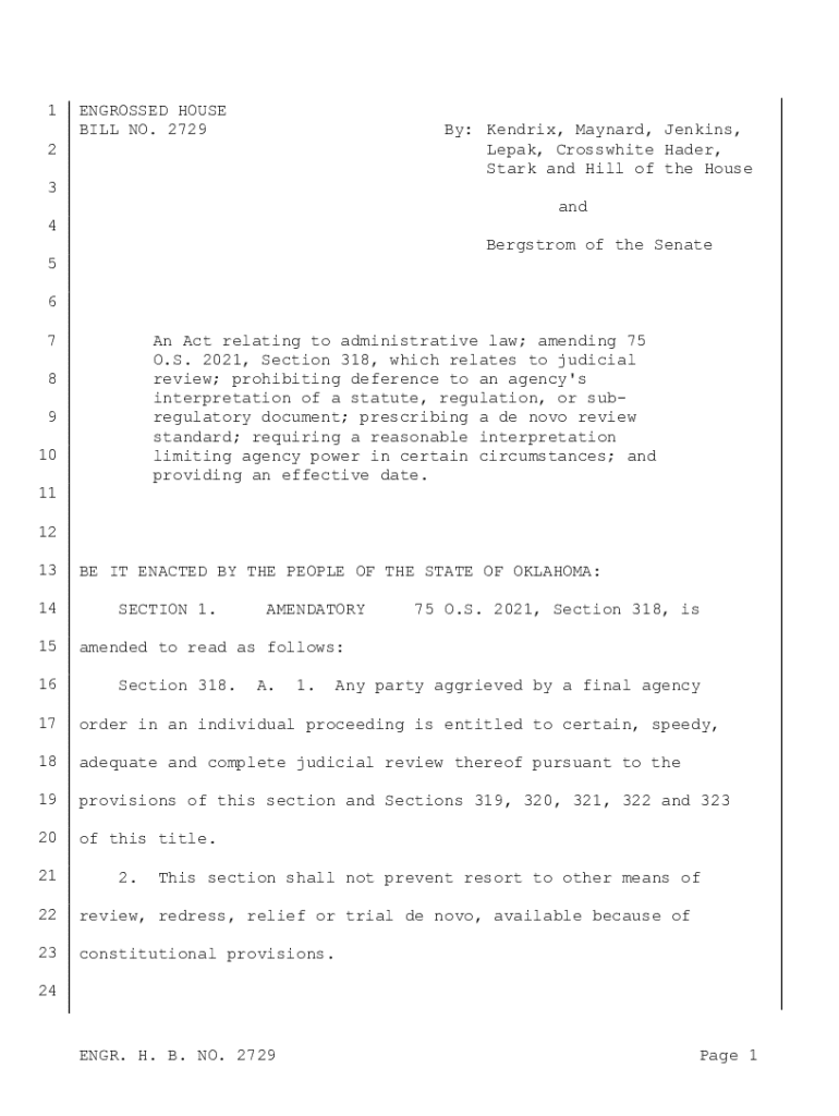 Get the free Engrossed House Bill No. 2729