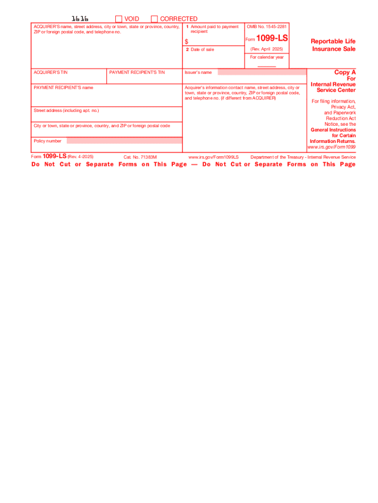 Form 1099-LS, Rev April, is a tax form used to report the sale or exchange of life insurance contracts. It provides the IRS with information regarding the proceeds from such transactions.