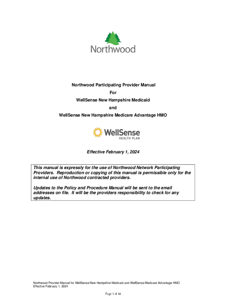 Get the free Northwood Participating Provider Manual