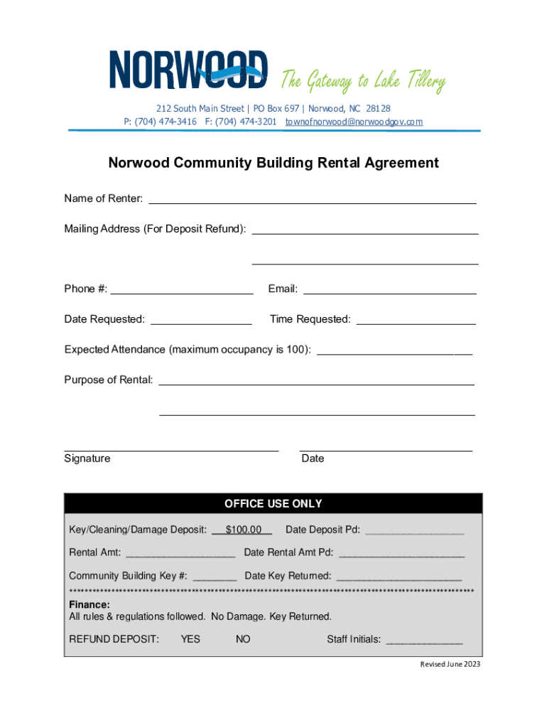 Get the free Norwood Community Building Rental Agreement