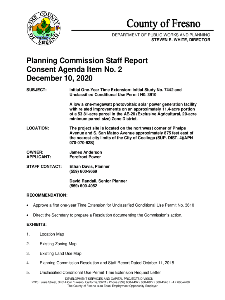 DEPARTMENT OF PUBLIC WORKS AND PLANNING STEVEN E. WHITE, DIRECTORPlanning Commission Staff Report Consent Agenda Item No. 2 December 10, 2020 SUBJECT:Initial OneYear Time Extension: Initial Study