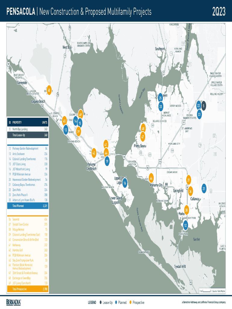 2Q23PENSACOLA | New Construction & Proposed Multifamily Projects40 35 22202349 IDPROPERTY5North Bay Landing240Total LeaseUp240Parkway Garden Redevelopment Arris Seahaven Colonial Landing Townhomes