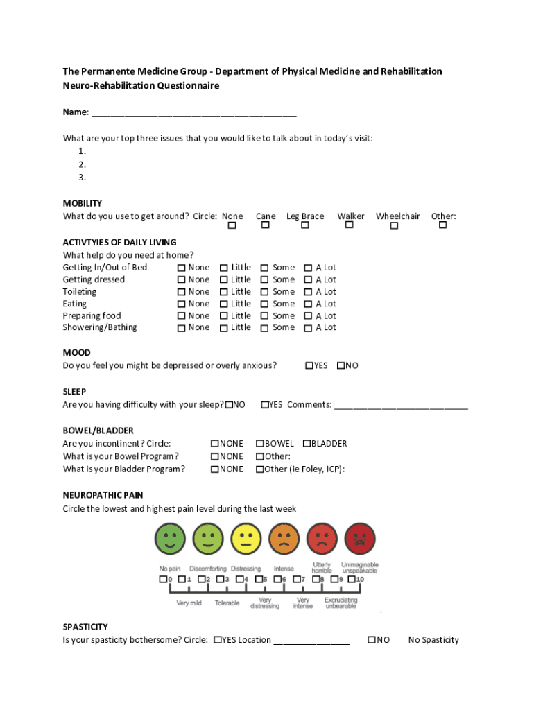 Get the free Neuro-rehabilitation Questionnaire - mydoctor kaiserpermanente