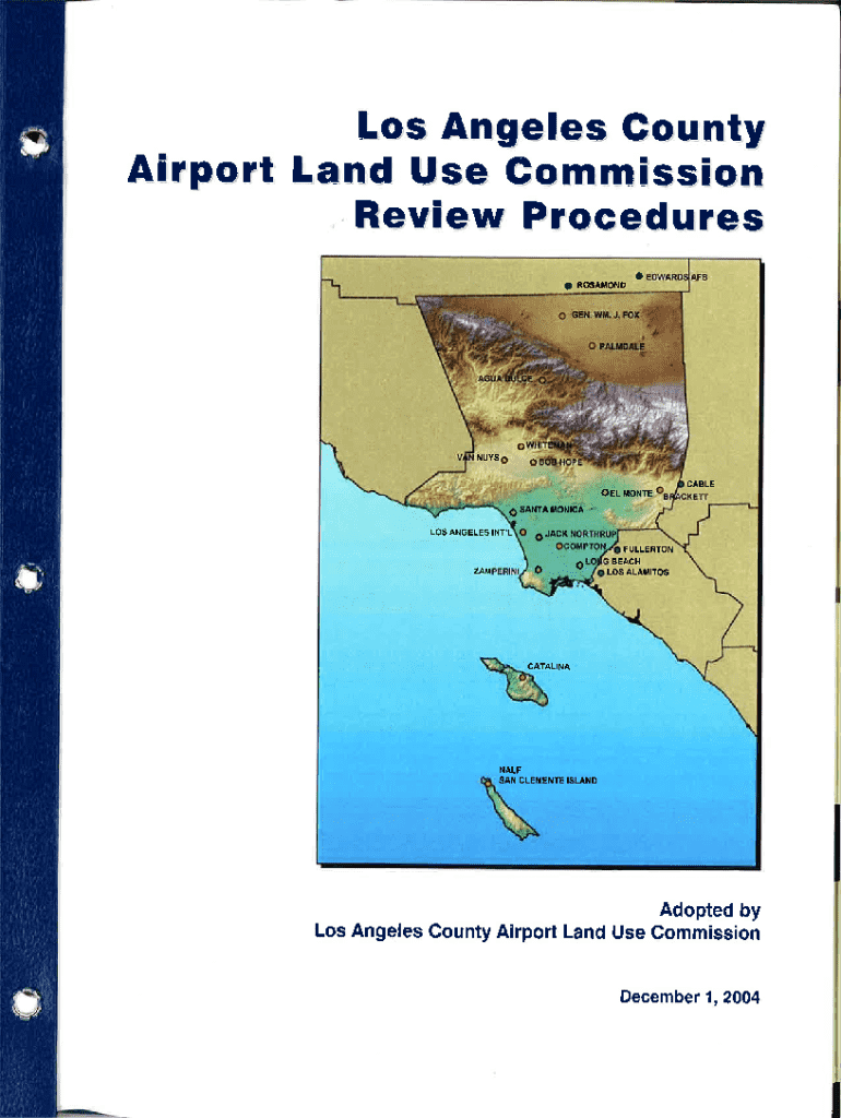 This document outlines the review procedures and policies applicable to the Los Angeles County Airport Land Use Commission (ALUC) for ensuring compatibility between airports and surrounding land uses,