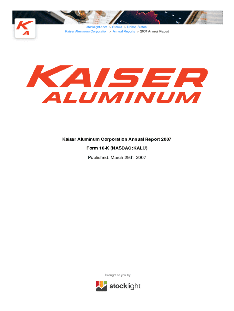 Kaiser Aluminum Corporation 2007 filings must report financial statements such as the balance sheet, income statement, cash flow statement, management discussion and analysis, and disclosures related to corporate governance and risks.