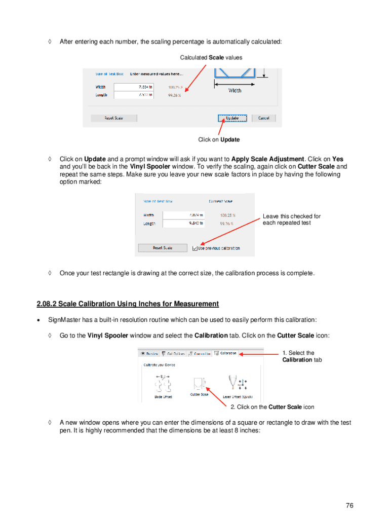 After entering each number, the scaling percentage is automatically calculated: Calculated Scale valuesClick on UpdateClick on Update and a prompt window will ask if you want to Apply Scale Adjustment.