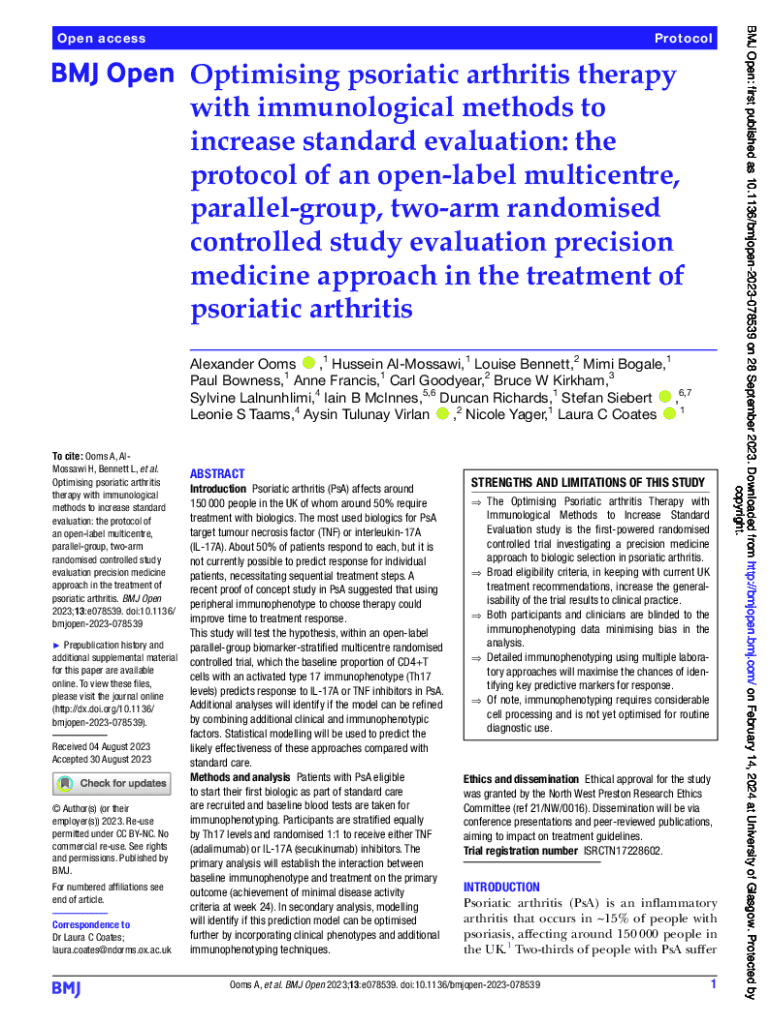 Fill out your optimising psoriatic arthritis formrapy online with pdfFiller!