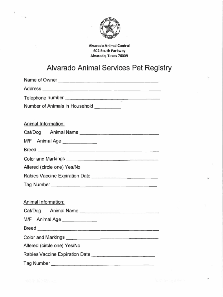 Get the free Alvarado Animal Services Pet Registry