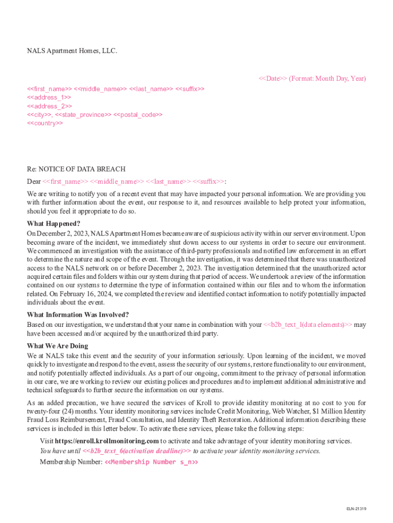 This document serves to notify individuals and business entities of a recent data breach that may have compromised personal and confidential information. It outlines the events surrounding the breach,