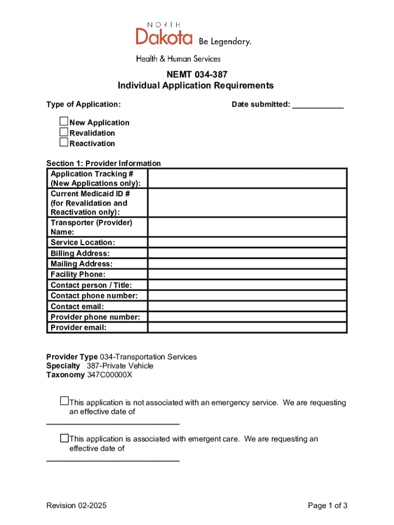 Healthcare providers and transportation companies that deliver non-emergency medical transportation services for Medicaid beneficiaries are required to file NEMT 034-387.