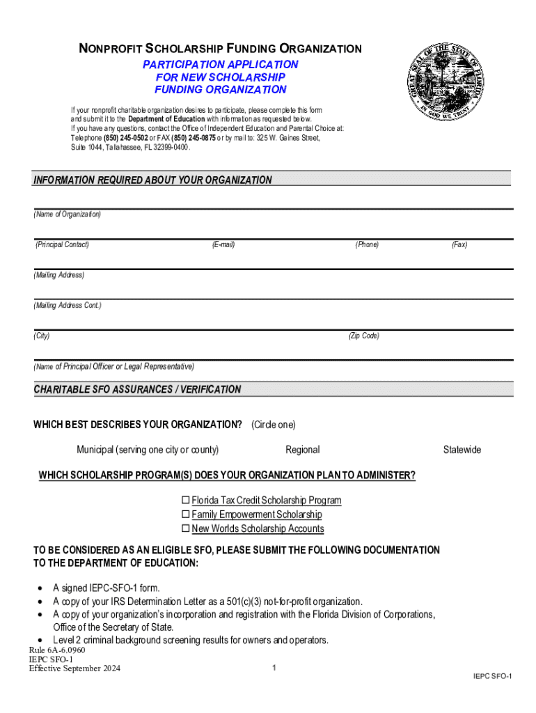 Get the free Nonprofit Scholarship Funding Organization Participation Application