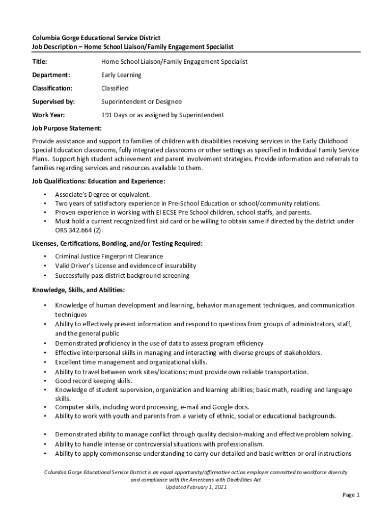 Get the free Job Description – Home School Liaison/family Engagement Specialist