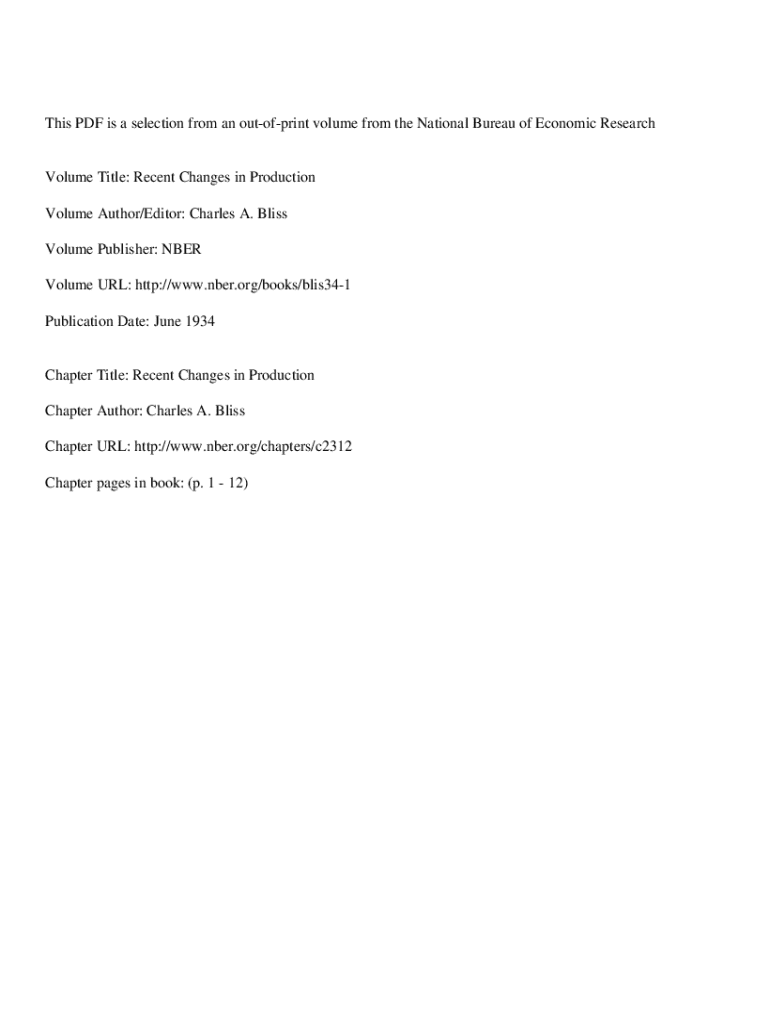 This PDF is a selection from an outofprint volume from the National Bureau of Economic ResearchVolume Title: Recent Changes in Production Volume Author/Editor: Charles A. Bliss Volume Publisher: NBER