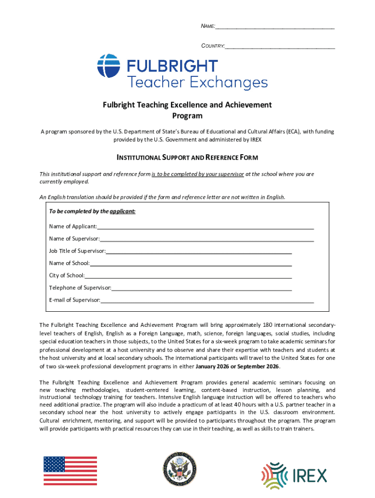 Get the free Institutional Support and Reference Form - dz usembassy