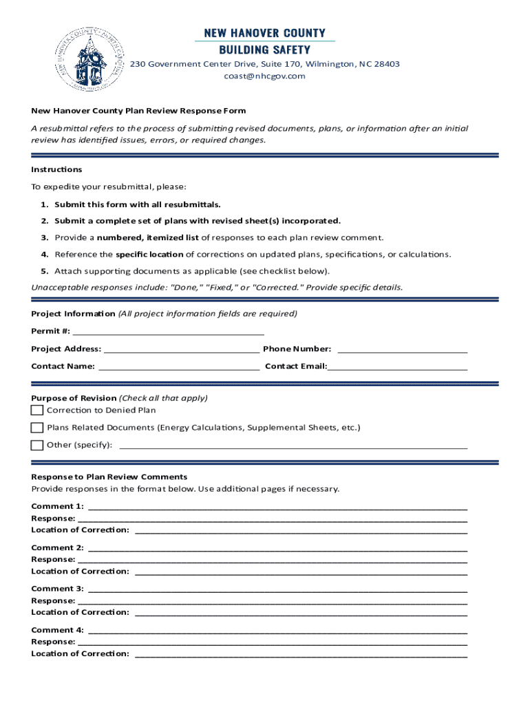 Get the free New Hanover County Plan Review Response Form