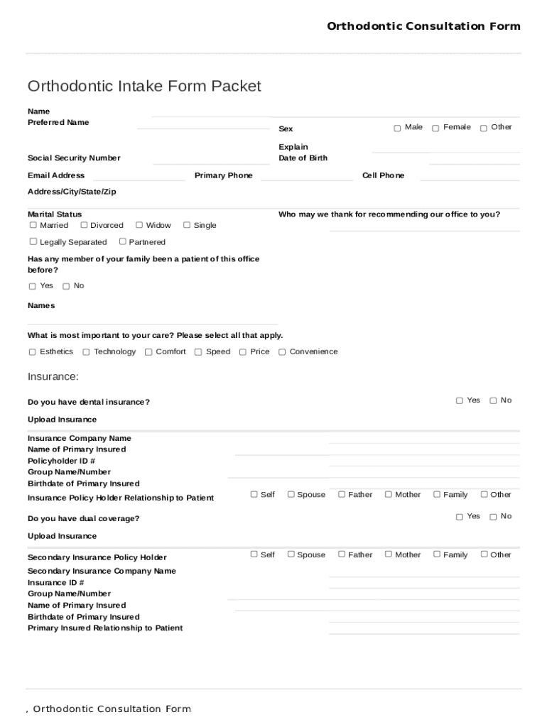 To fill out the orthodontic consultation form, patients should provide accurate personal information, dental history, medical history, and any relevant concerns they may have regarding their teeth or jaw.