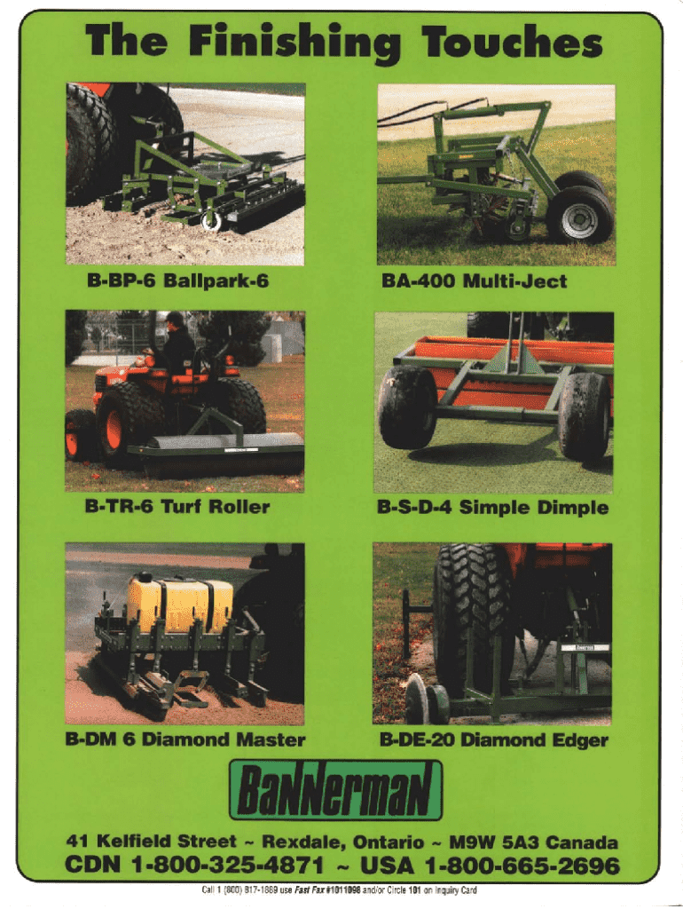 BBP& Ballpark&BA400 MultiJectBTR& Turf RollerBSD4 Simple DimpleBDM & Diamond MasterBDE20 Diamond Edger41 Kelfield Street Rexdale, Ontario M9W 5A3 CanadaCDN 18003254871 ,..;USA 18006652696 Call 1 (800)