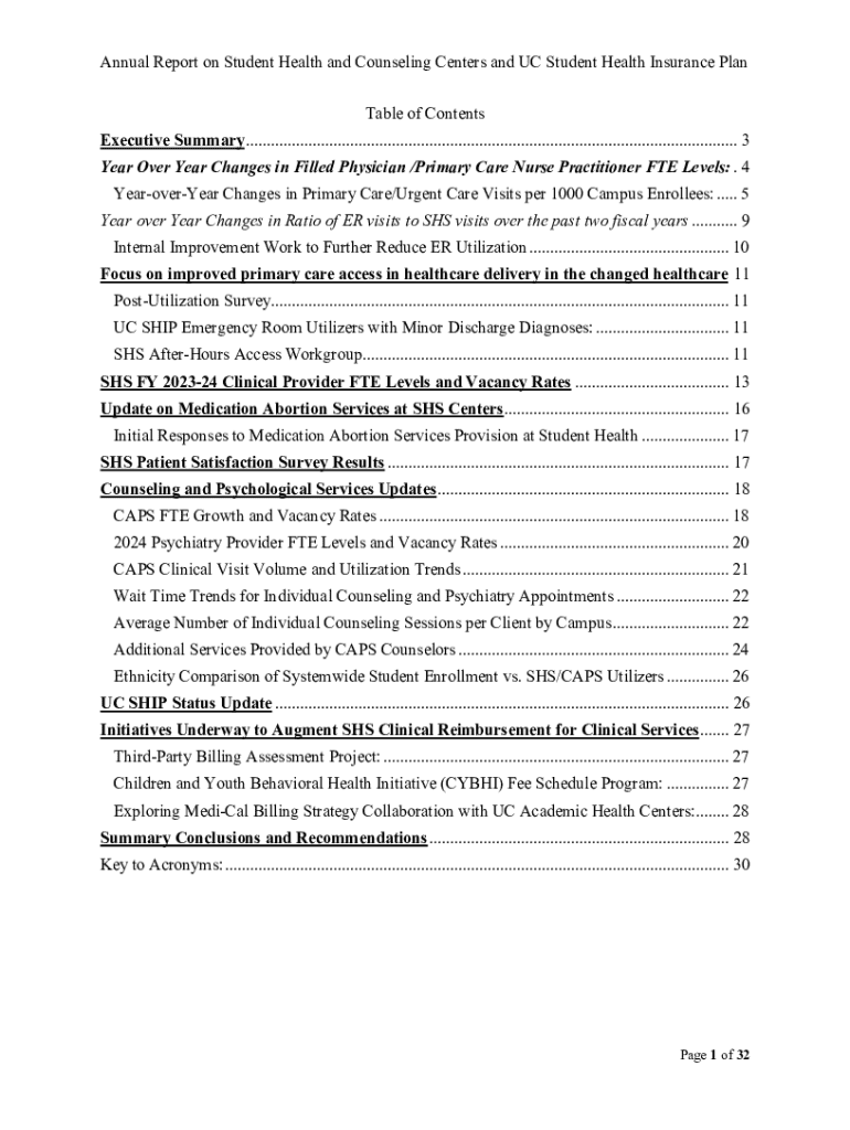 Get the free Annual Report on Student Health and Counseling Centers and Uc Student Health Insuran...