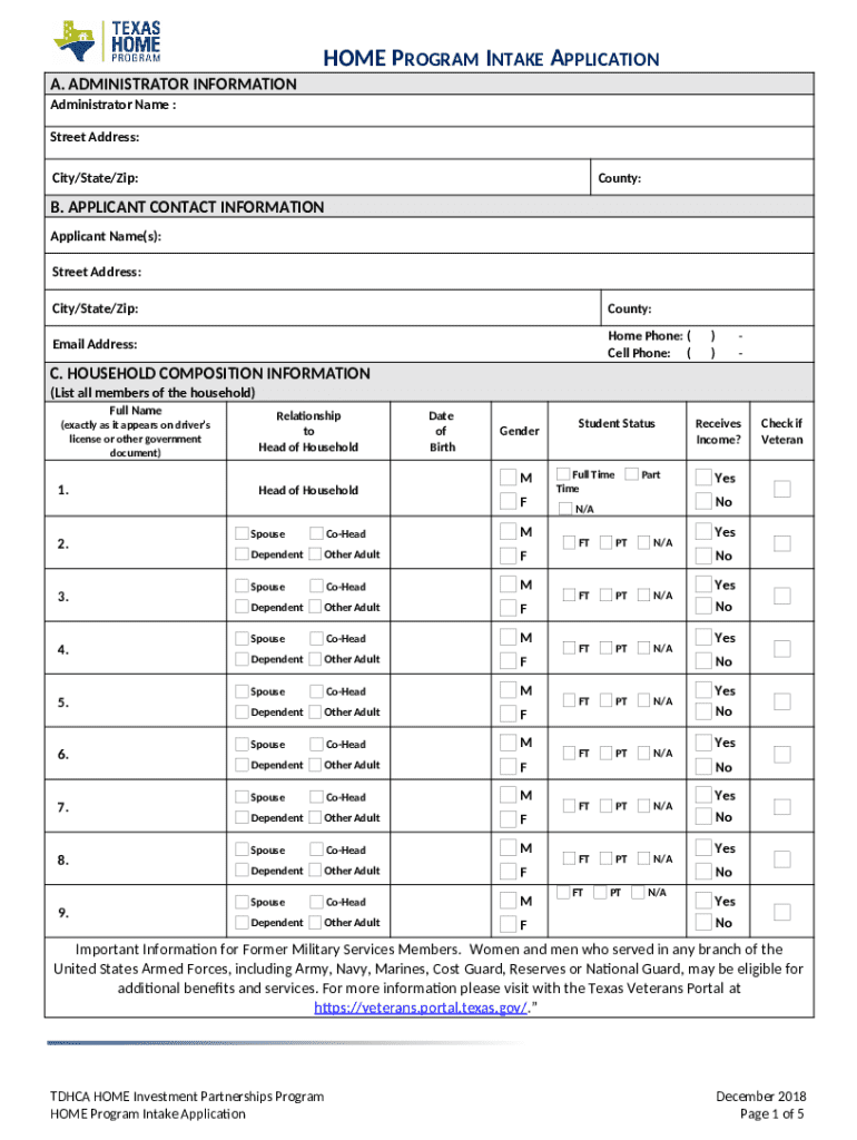 How to fill out Home Program Intake Application