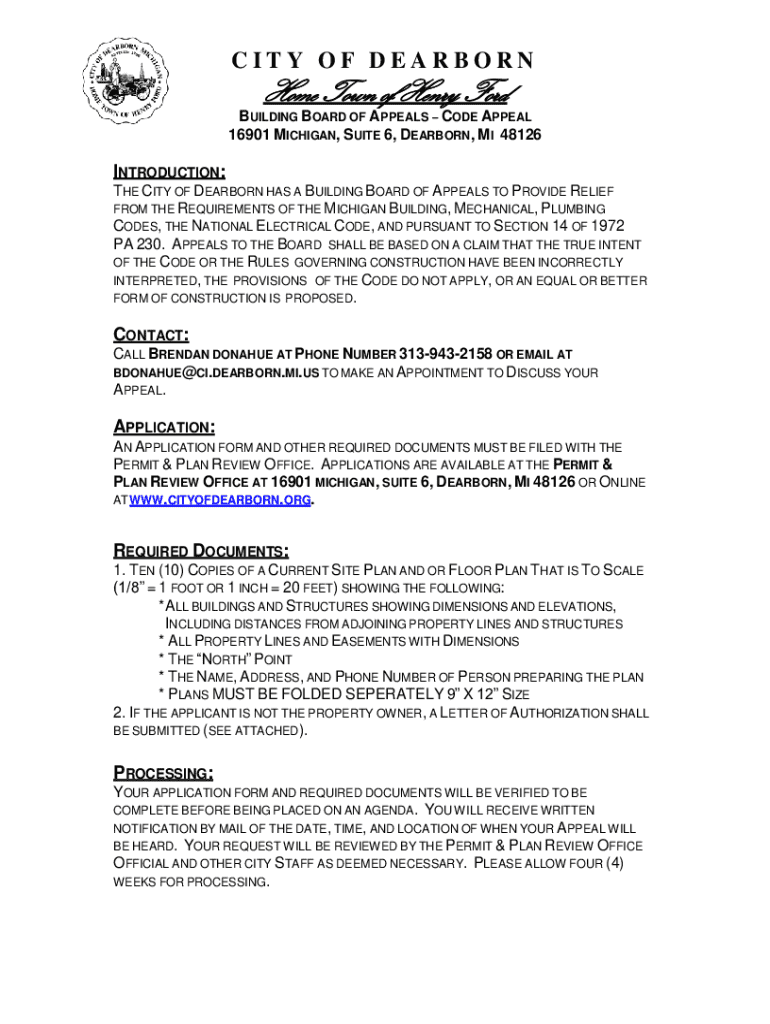 Get the free Building Board of Appeals - Code Appeal