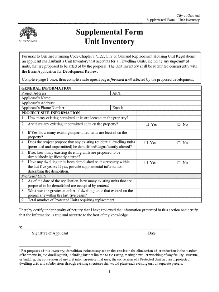 Get the free Supplemental Form – Unit Inventory
