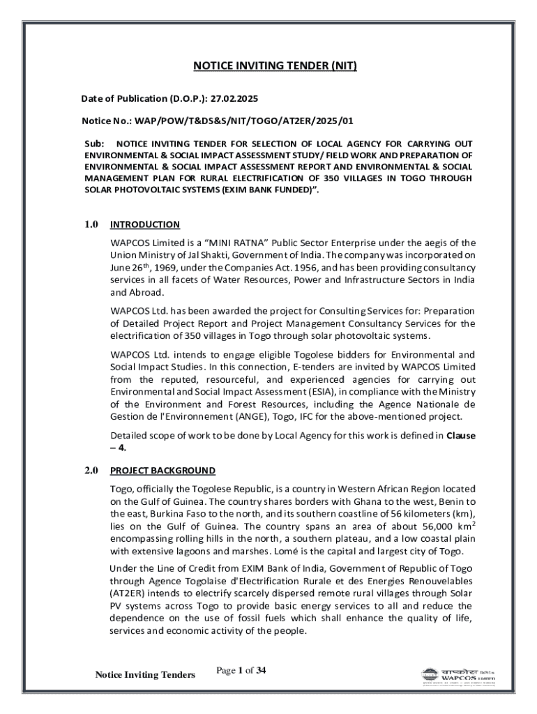Get the free Notice Inviting Tender (nit)