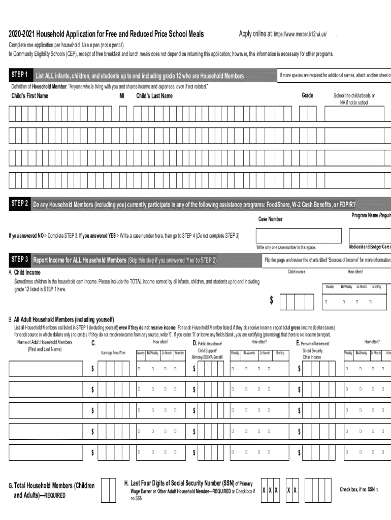 Este formulario se utiliza para solicitar comidas escolares gratuitas y a precio reducido para el año escolar 2020-2021. Se debe completar una solicitud por hogar y proporcionar información sobre