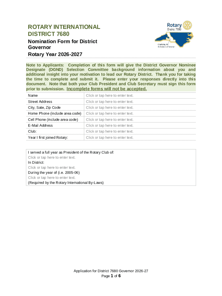 How to fill Nomination for District Governor word template