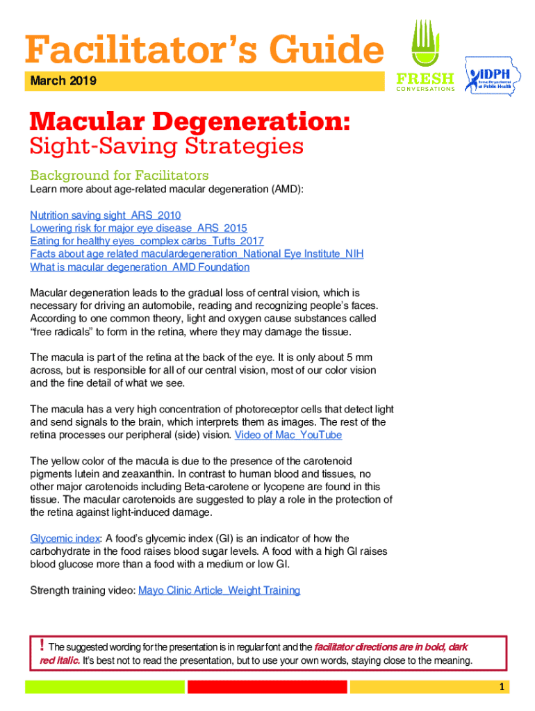 Get the free Facilitator's Guide - Macular Degeneration - publications iowa