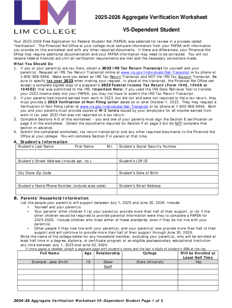 How to fill out 2025-2026 aggregate verification worksheet