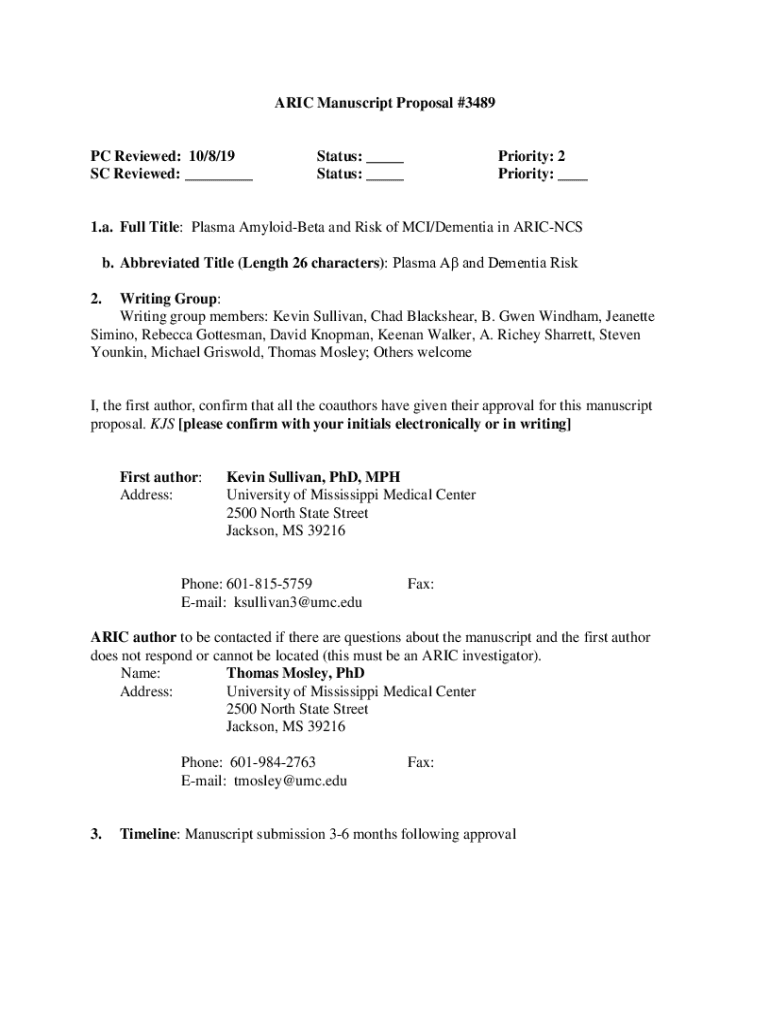 Email, fax, or share your aric manuscript proposal 3489 form via URL. You can also download, print, or export forms to your preferred cloud storage service.