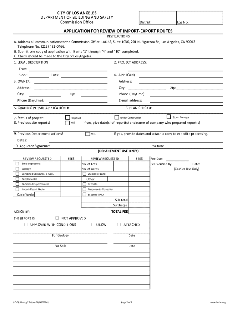 Application to request a review and approval for importing or exporting of earth material in a grading hillside area, including necessary documentation and fees.