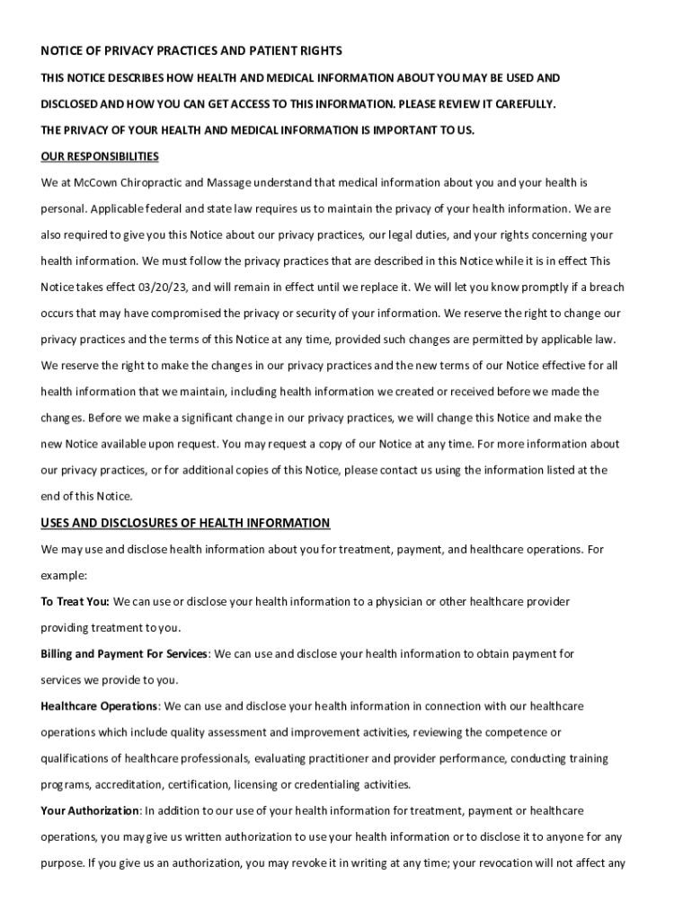 Get the free NOTICE OF PRIVACY PRACTICES AND PATIENT RIGHTS