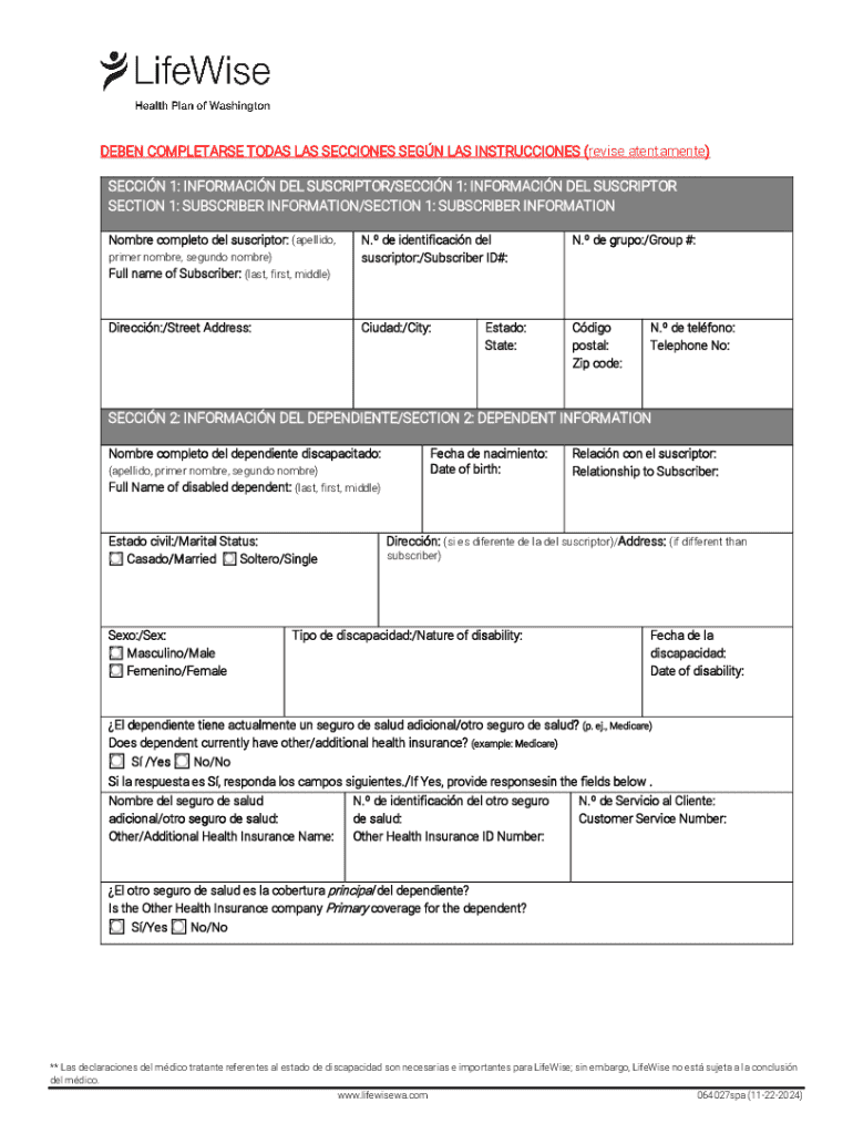 El formulario se utiliza para determinar la elegibilidad de un hijo adulto dependiente para continuar la cobertura del plan después de alcanzar el límite de edad, en caso de que tenga una discapacidad